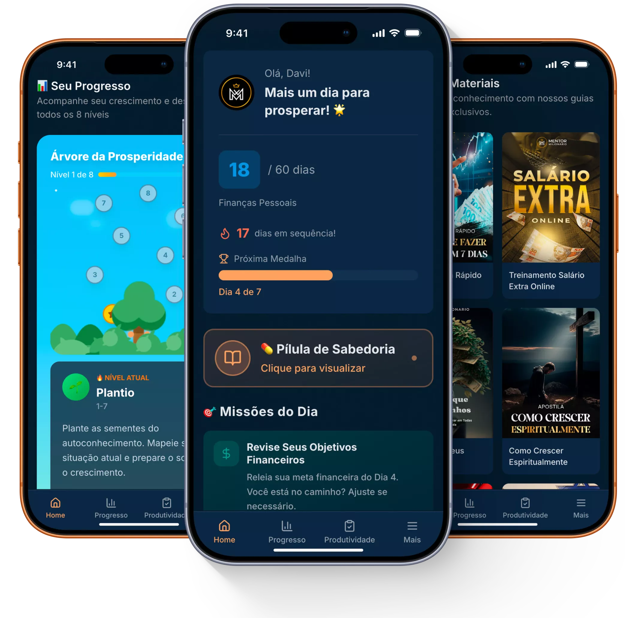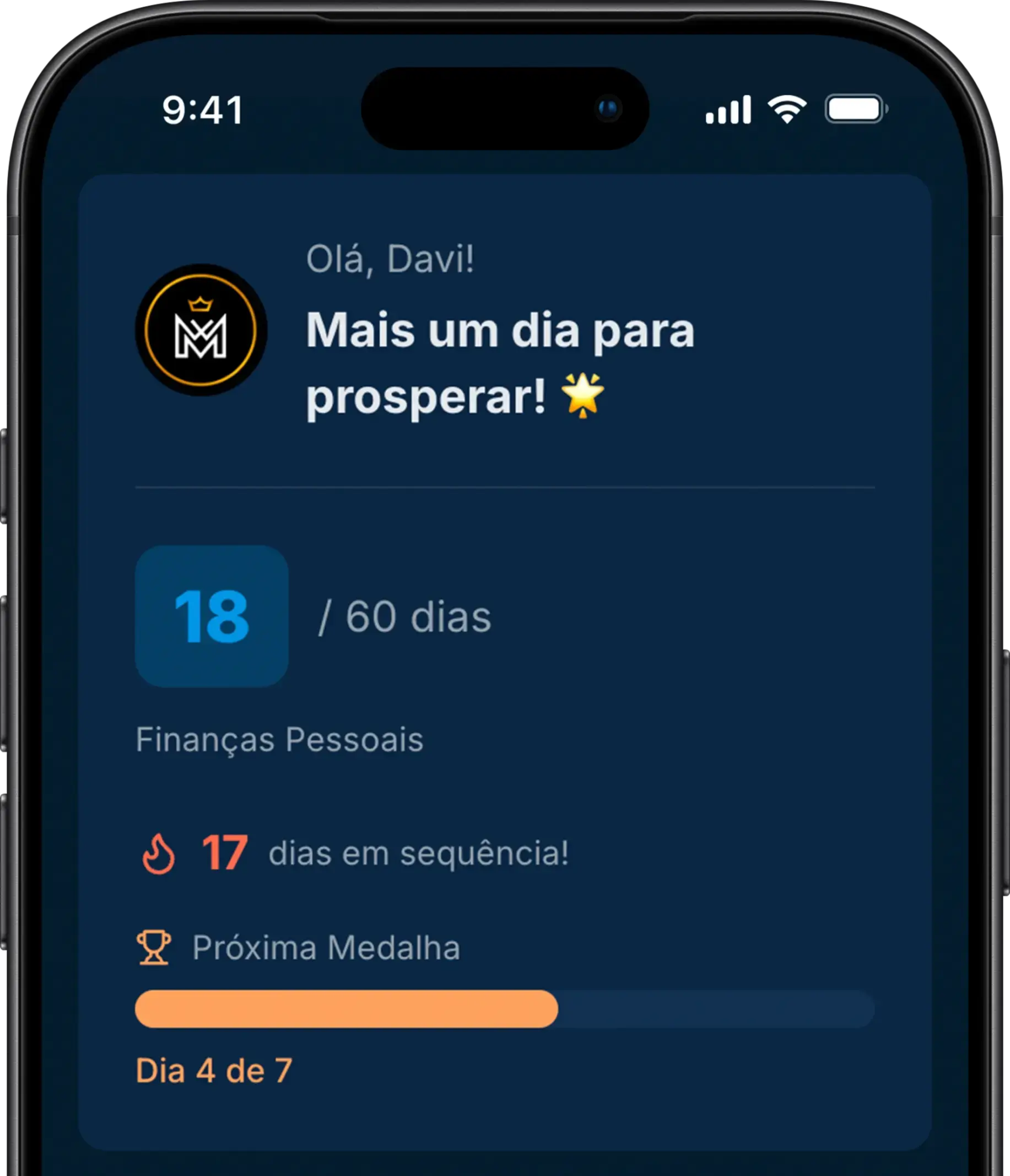 Um desafio dividido em dias, com treinamentos, aulas, ferramentas, estratégias, e um calendário de ações que te entregarão o caminho exato a ser trilhado para prosperar nas 5 esferas da vida como nunca — NOS PRÓXIMOS 60 DIAS.